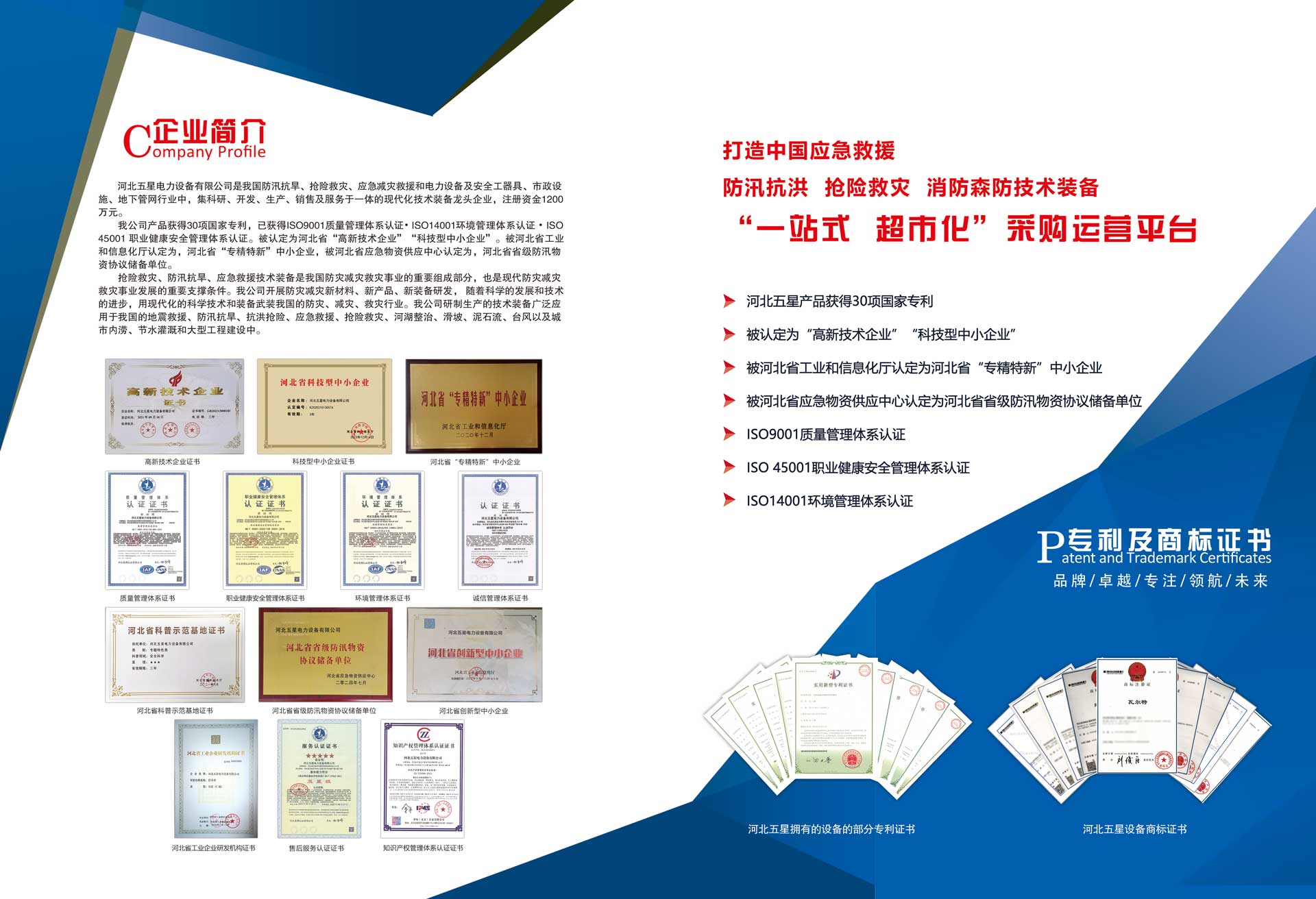 河北五星電力設(shè)備有限公司是我國防汛抗旱、搶險(xiǎn)救災(zāi)、應(yīng)急減災(zāi)救援和電力設(shè)備及安全工器具、市政設(shè)施、地下管網(wǎng)行業(yè)中,集科研、開發(fā)、生產(chǎn)、銷售及服務(wù)于一體的現(xiàn)代化技術(shù)裝備高新技術(shù)企業(yè),注冊(cè)資金1200萬元。  我公司產(chǎn)品已獲得ISO9001質(zhì)量管理體系...